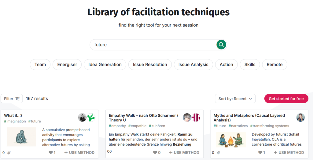 You can find these and many other methods in SessionLab’s Library. Just look for the keyword “Future”.